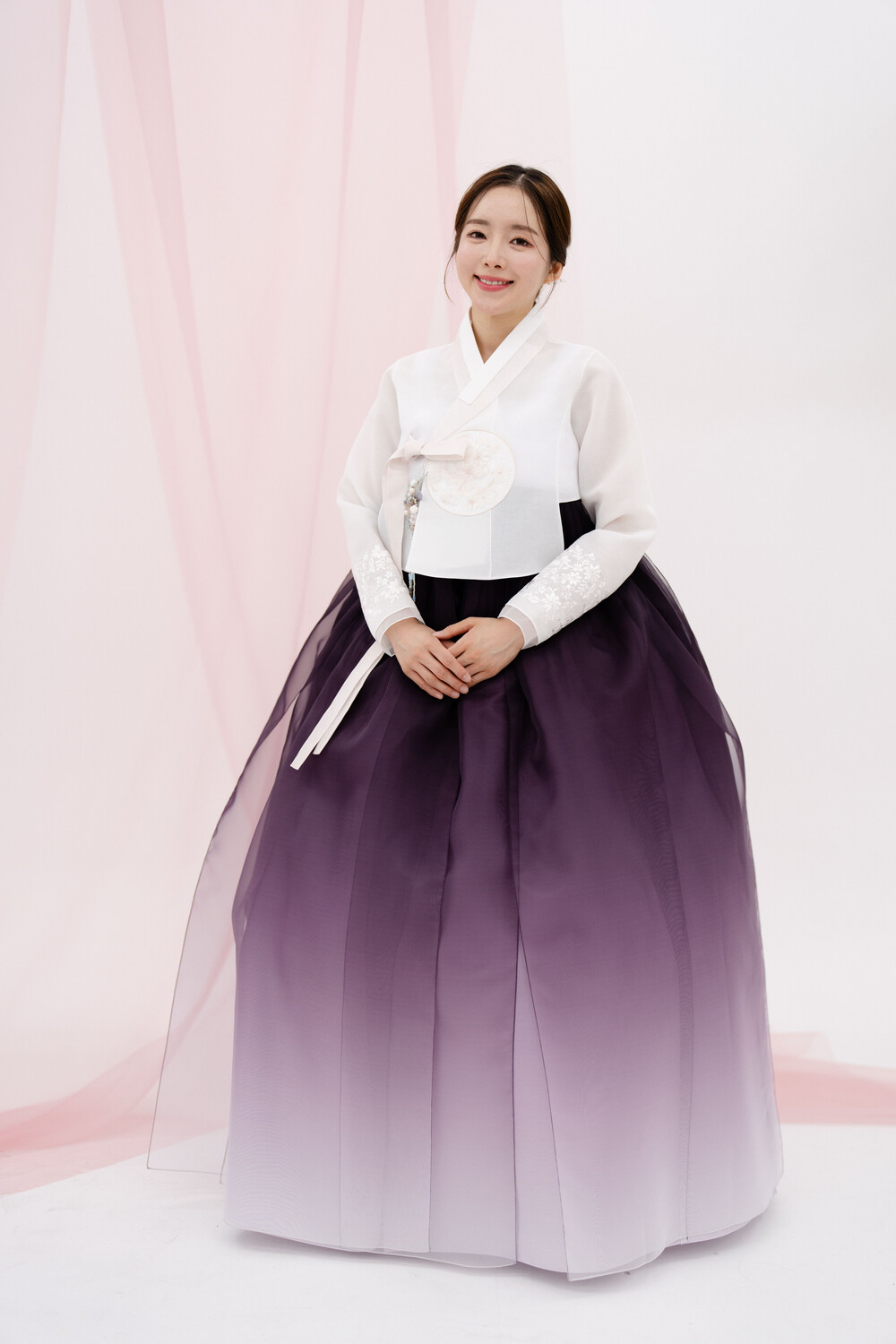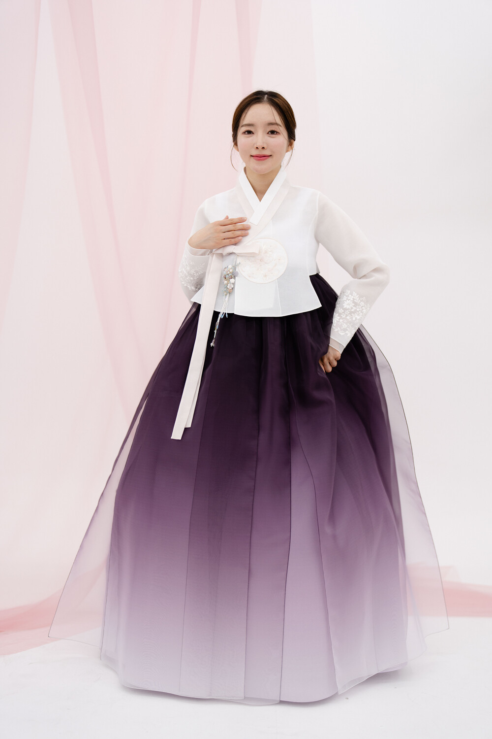 보라색 그라데이션 갈래치마 입니다.