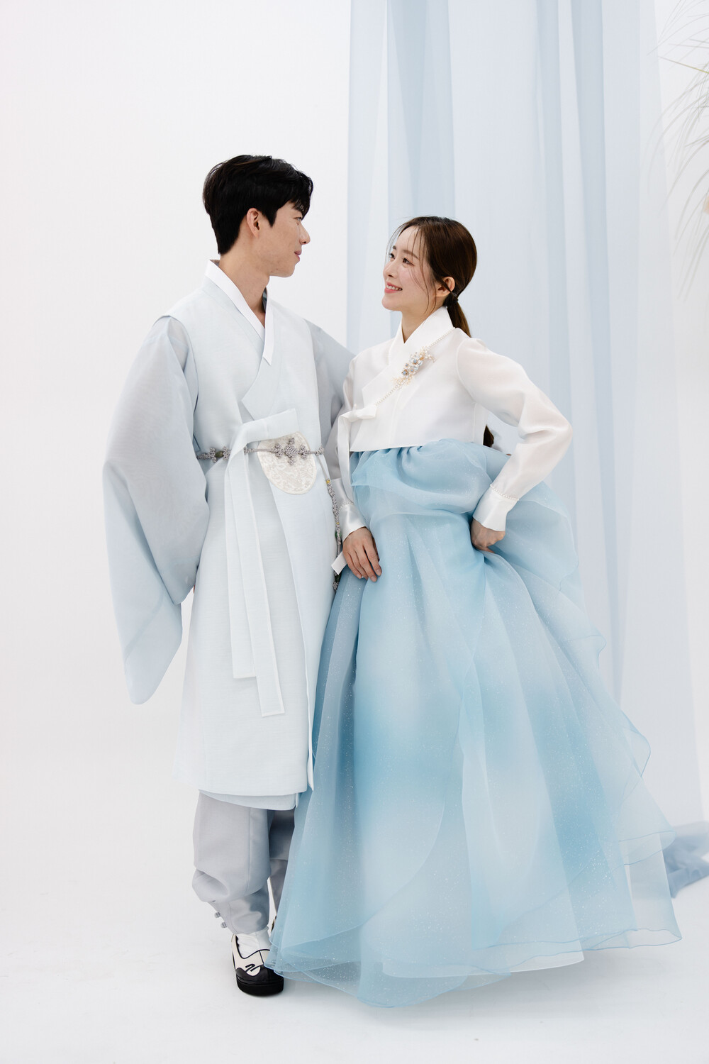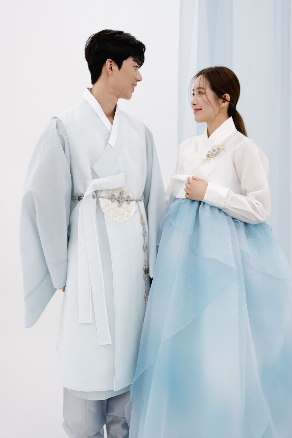 펄 시스루 원단으로 만들어서 화려함을 한층 더 강조 했습니다.