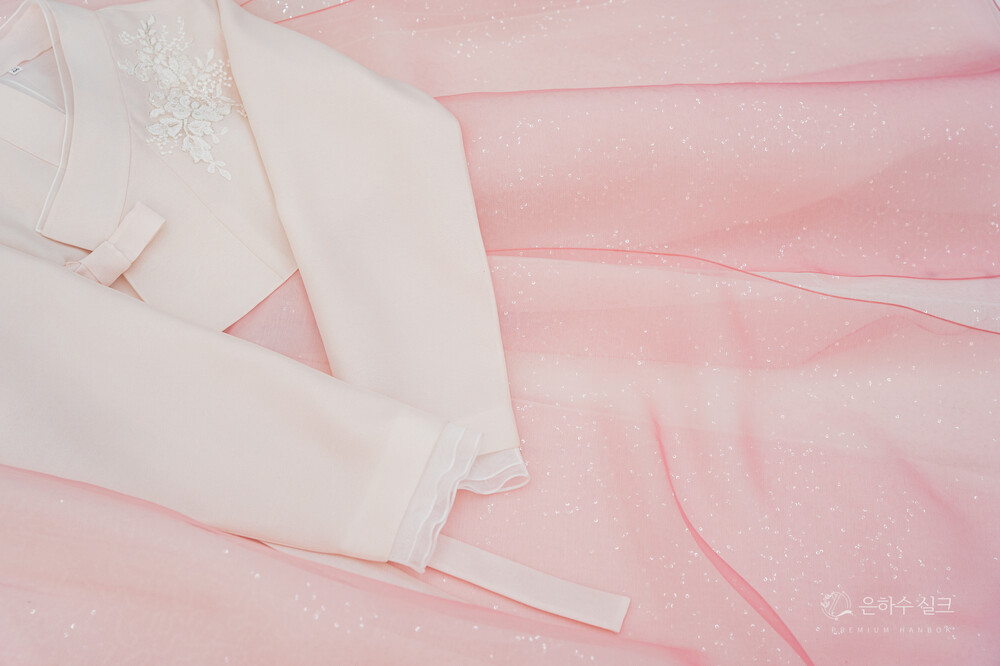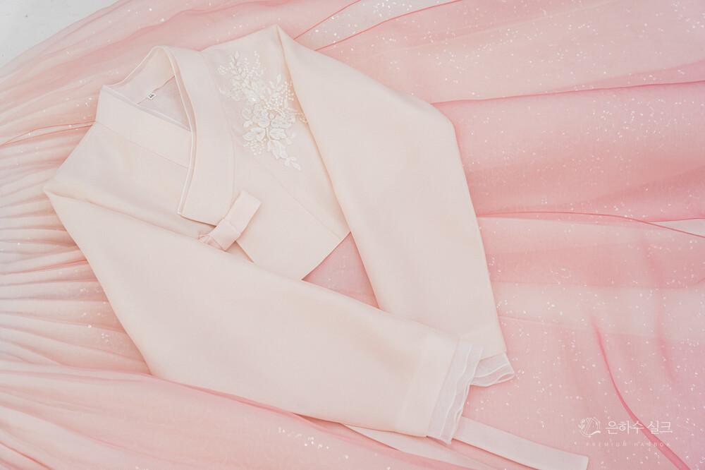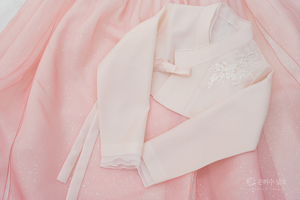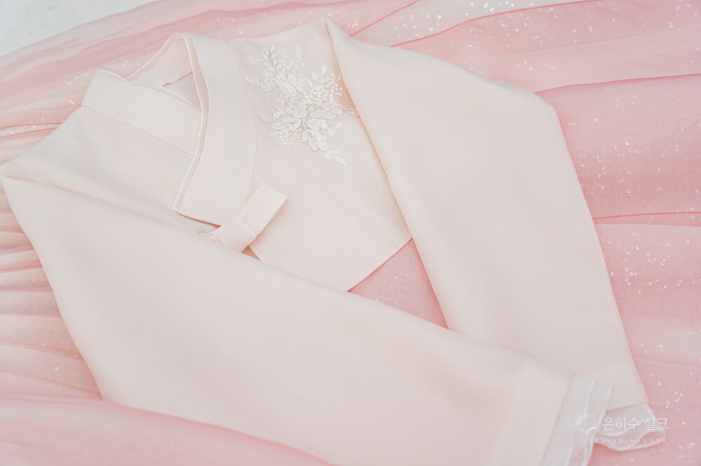 연한 핑크색 패치 저고리 입니다.