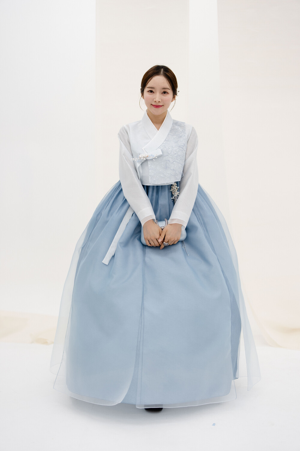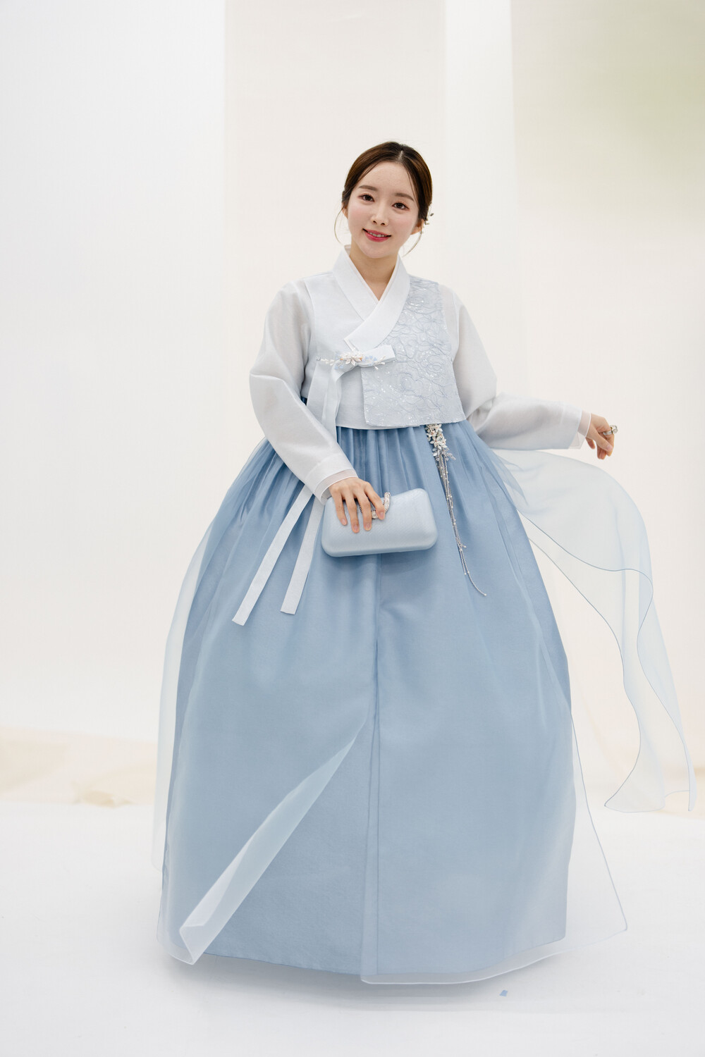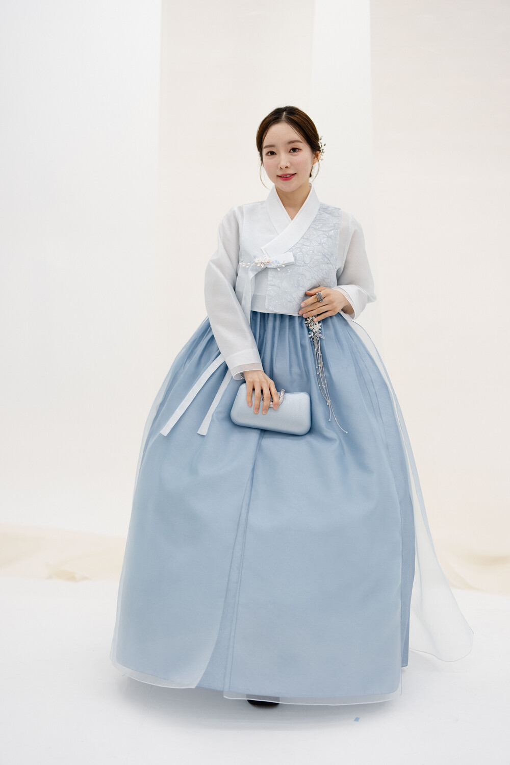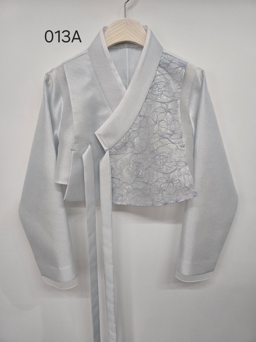 하늘색 꽃레이스 날개저고리 입니다.
