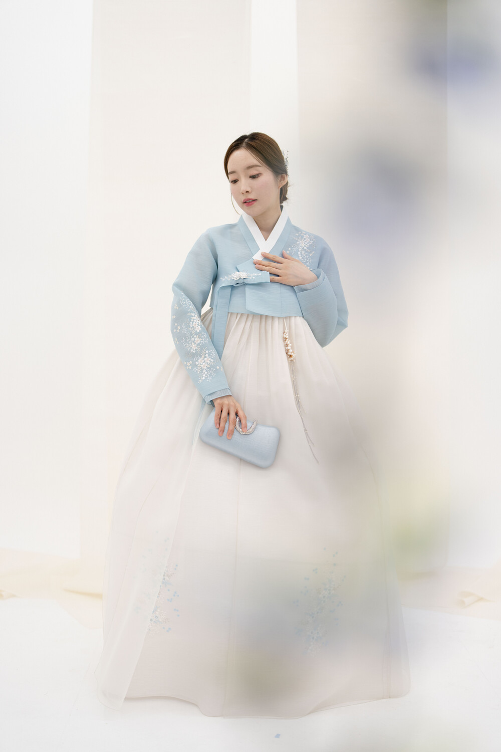 별꽃 자수 연하늘색 저고리 입니다.