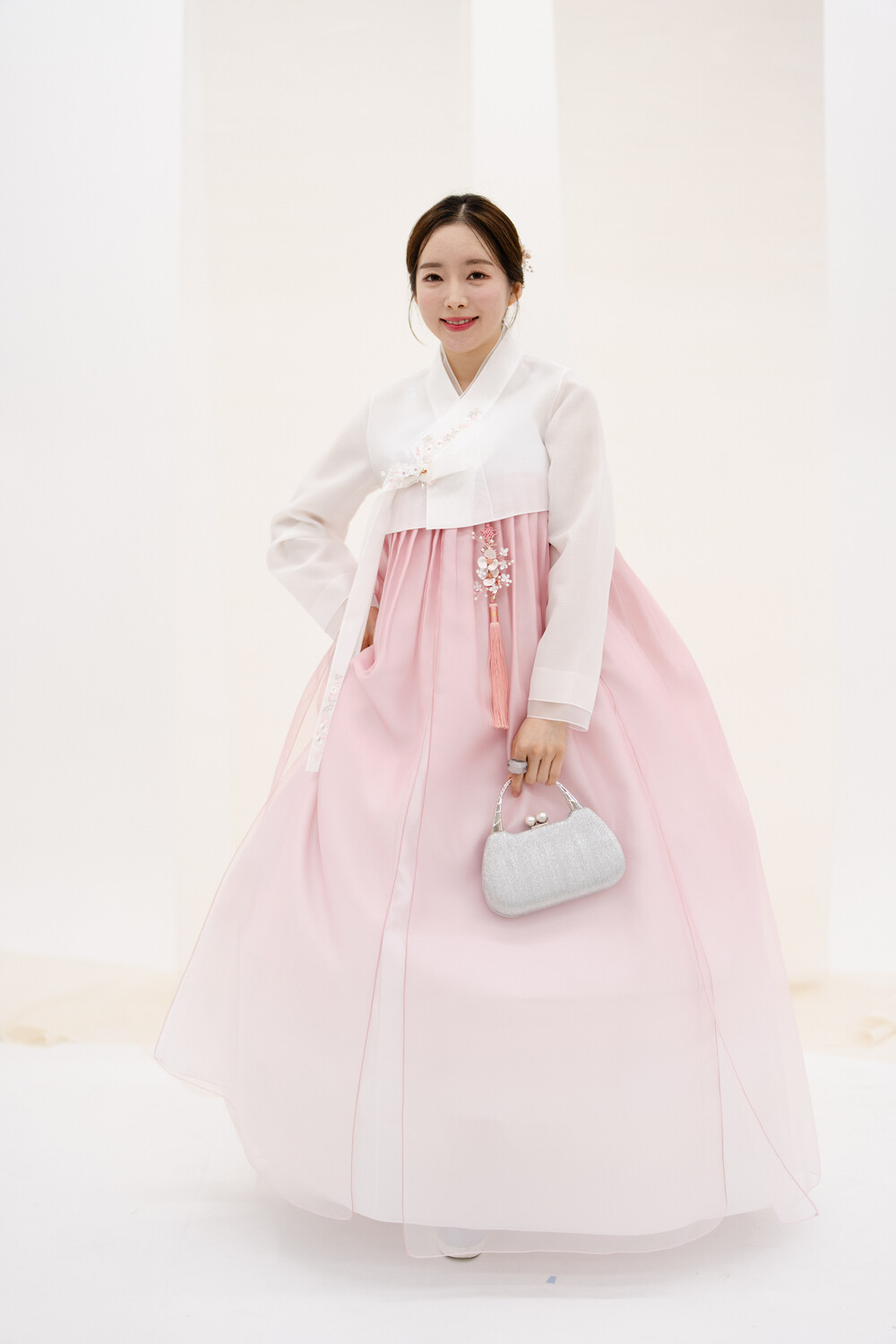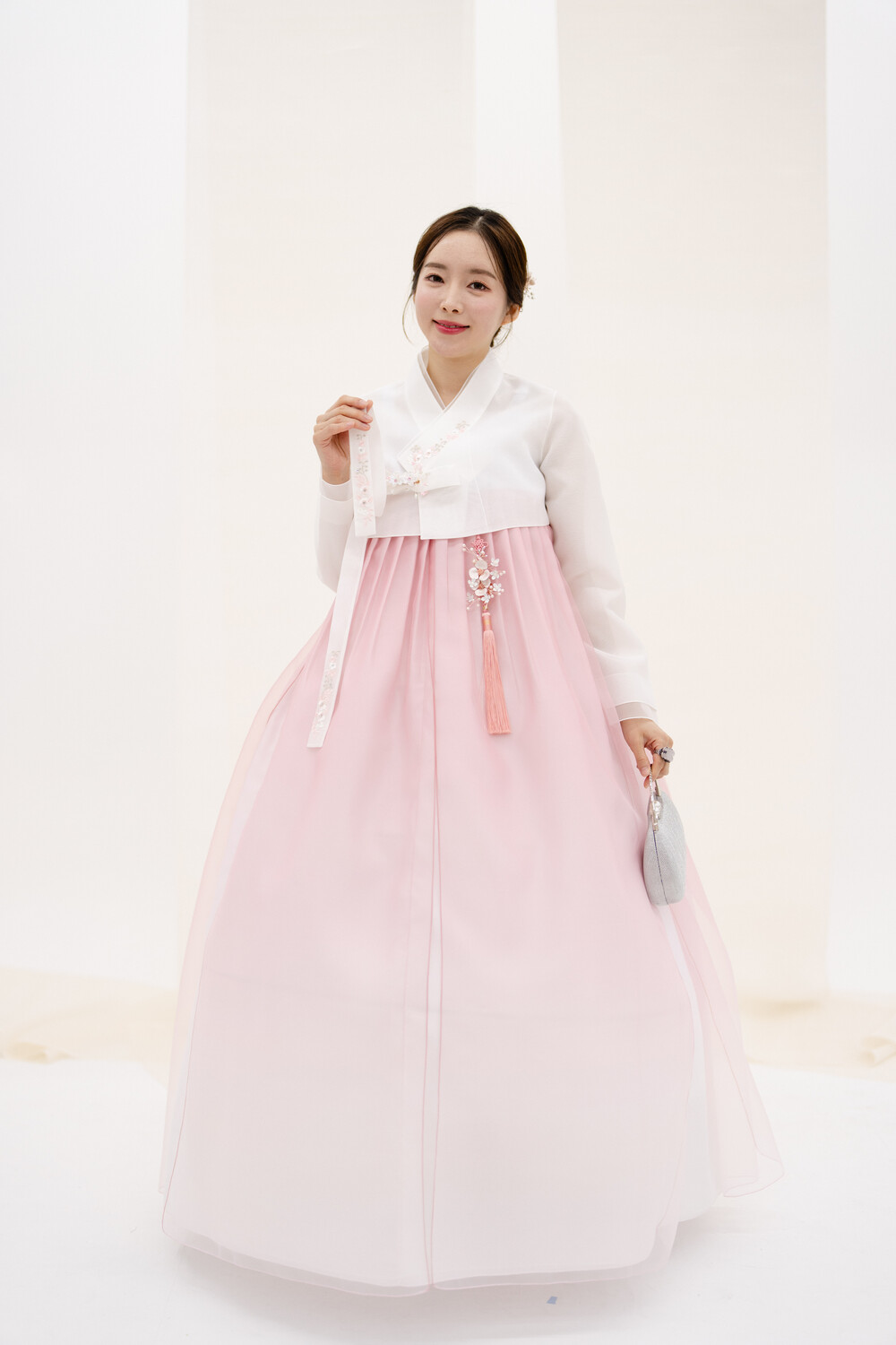 연핑크색 더블 그라데이션 갈래치마 입니다.