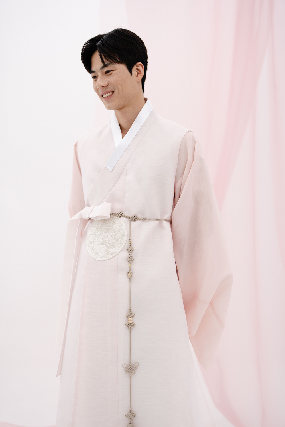연핑크색 원단에 화사한 색감의 쾌자 입니다.
